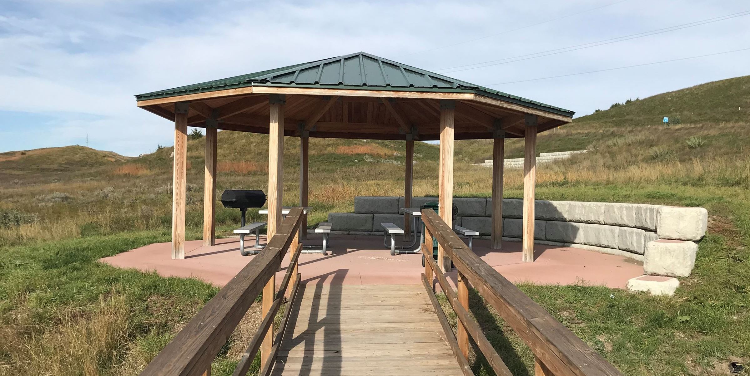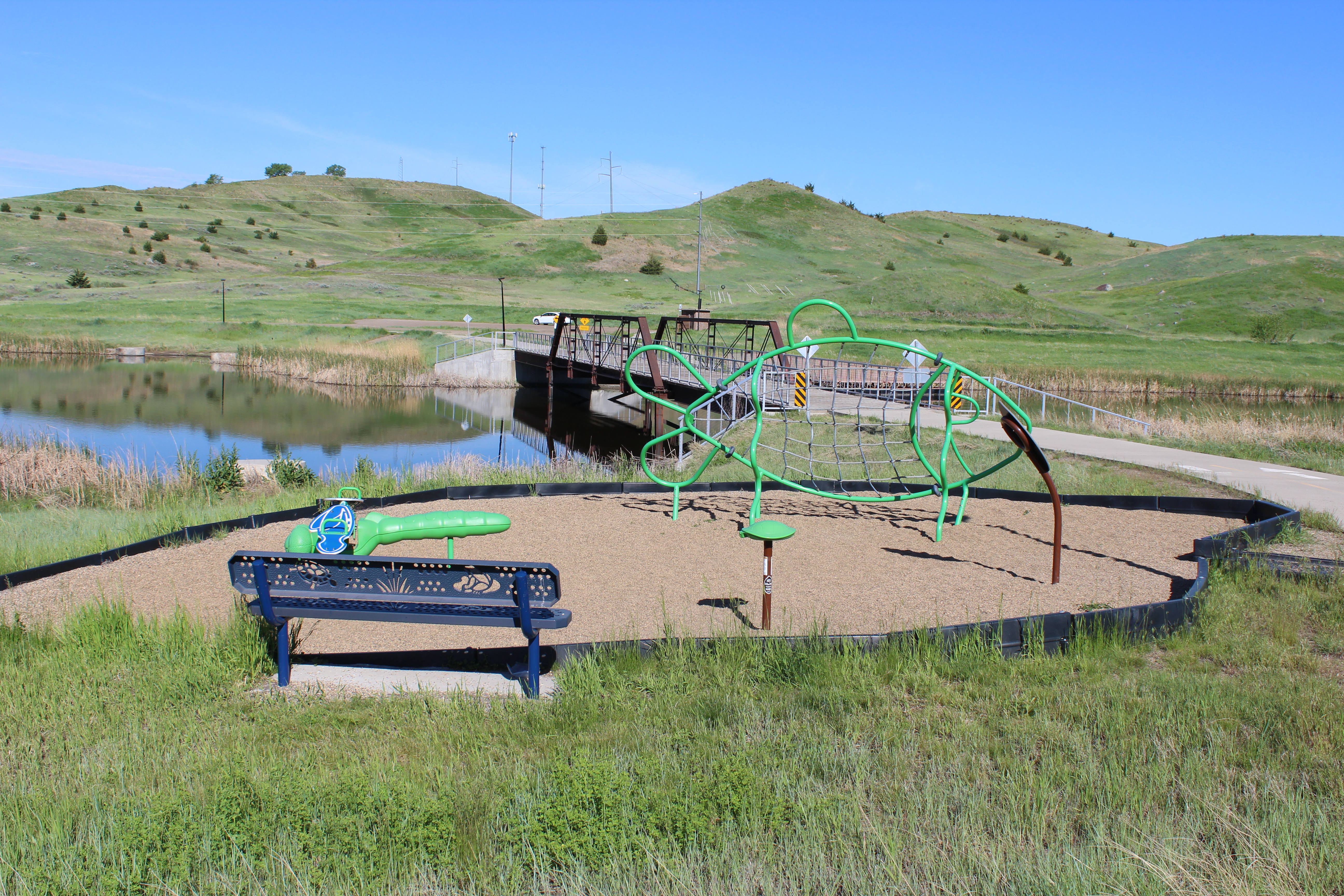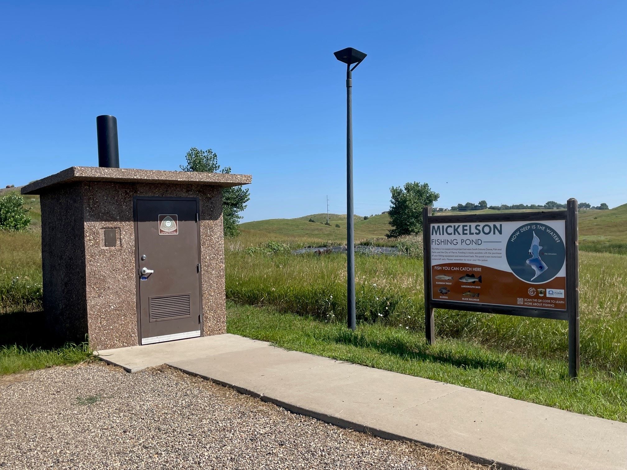 Mickelson Pond park, located along Fourth Street in the northern part of Pierre, is 5 acres and features a kids’ fishing pond, a picnic shelter with grill, and a recreation playtrail / walking path that connects the park to Hilger’s Gulch.