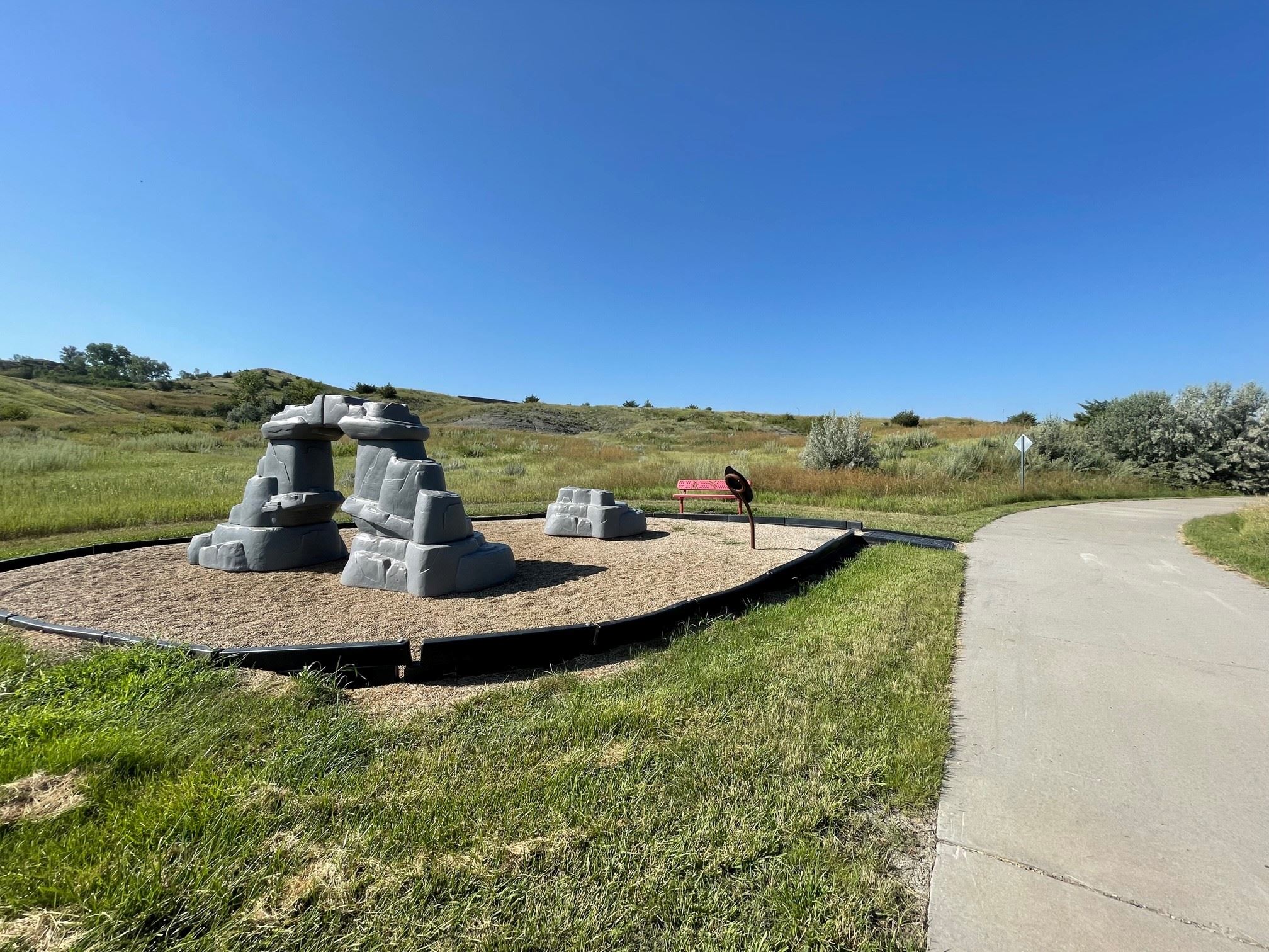 The 1.23 mile hard surface walking trail was constructed in 2009. The trail surface is concrete and has a maximum grade of 7 percent.